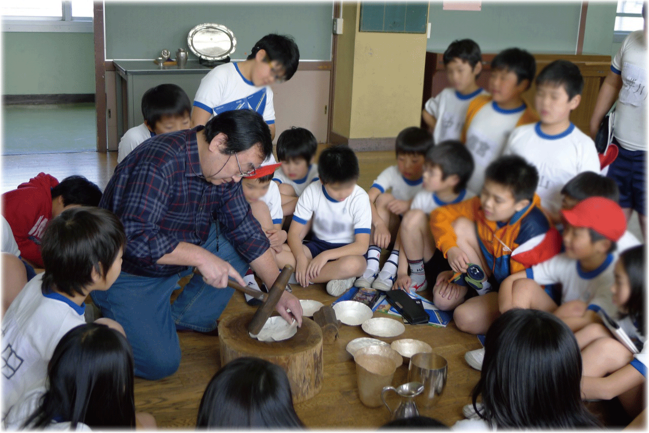 本業の傍ら、小学校等から依頼を受け、子供たちにモノづくりの楽しさ、銀の魅力を伝える活動をしています。子供たちが興味津々に銀を触り、叩く姿を見ると、言葉に出来ない温かな気持ちになります。