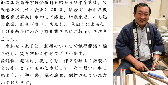 | 平成24年5月 | 東京金銀器工業協同組合 専務理事就任 |